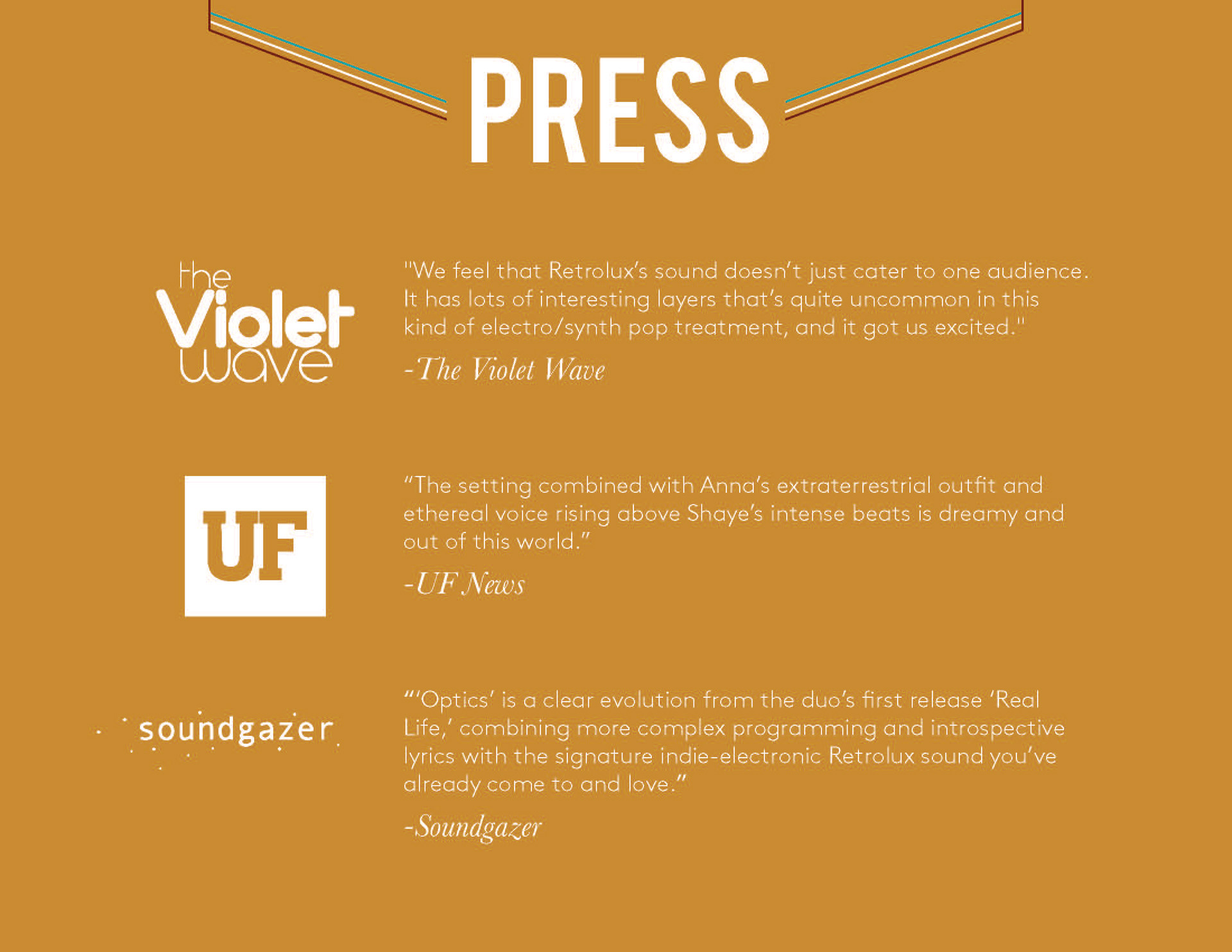 Past EPK for the electronic duo "Retrolux" of Gainesville, FL (now Brooklyn, NY).